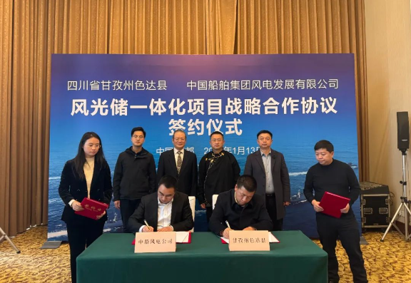 1月13日,色达县与中国船舶集团风电发展有限公司签署风光储一体化项目战略合作协议。
