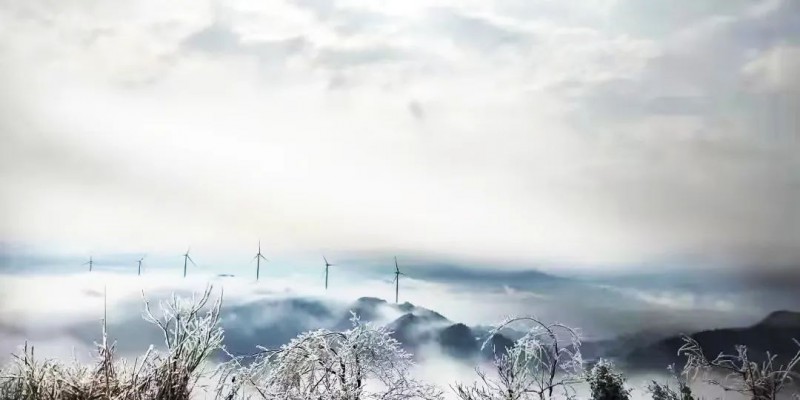 山西景能闻喜基地一期项目,33台运达股份WD200-5560风电机组和3台WD190-5500风电机组依山屹立,在云雾和冬雪的映衬下显得格外壮丽。