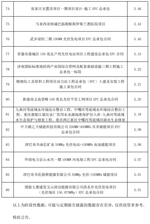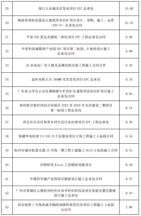 根据公告显示,2023年1-12月,能源电力新签项目数量4590个,新签合同金额6167.74亿元,同比增加36.17%。