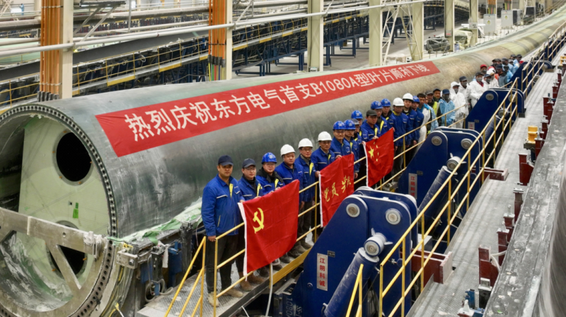 该型叶片成功下线实现了科研技术引领项目工程落地,标志着东方风电形成了研发、制造、质管、销售为一体的叶片产业体系,充分实现叶片高质量制造,为东方风电叶片产业高质量发展注入强劲动能。