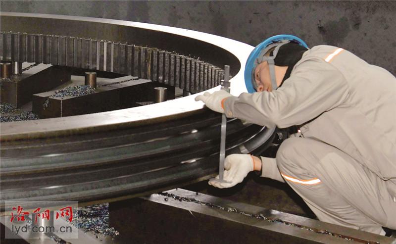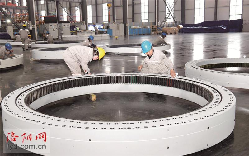 近日,在洛阳新强联大功率风力发电主机配套轴承项目厂房内,工人们正在生产风电精密轴承产品。