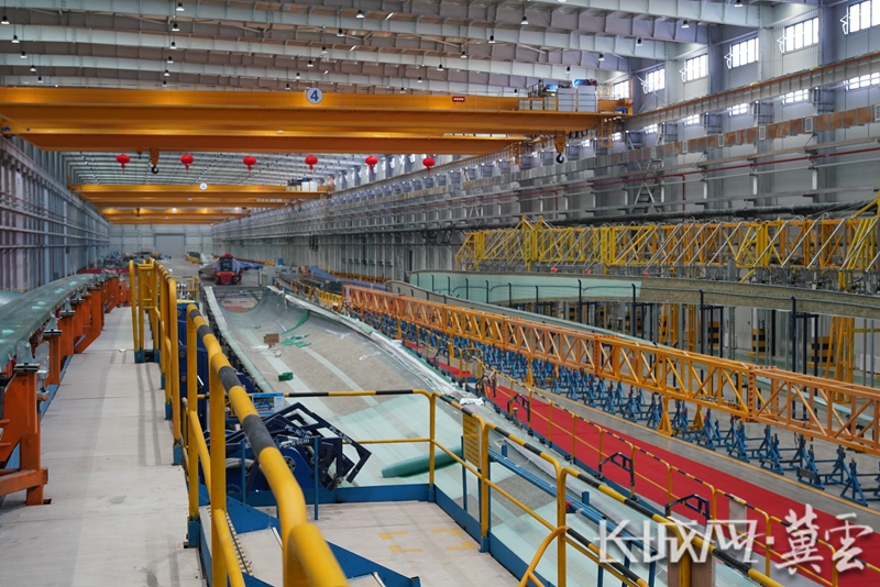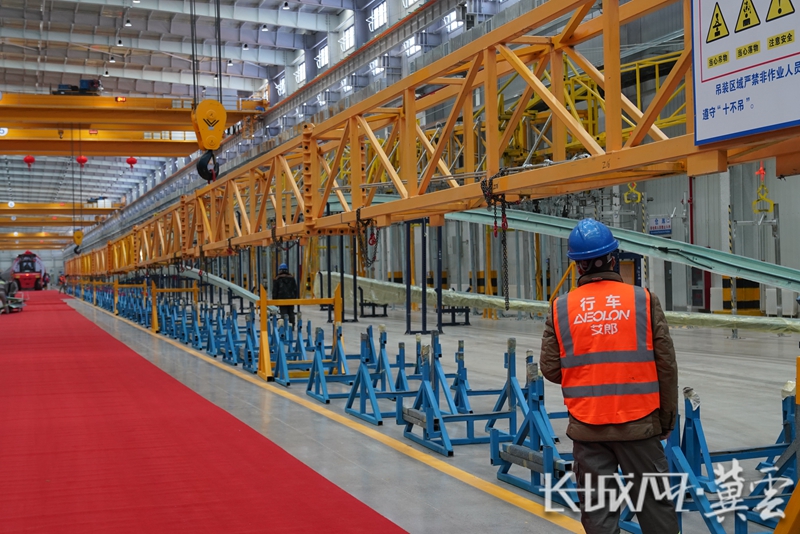 如今,艾郎叶片扩建工程已实现部分投产,拥有了两条陆地百米级大兆瓦叶片生产线,产品将主要销往国内北方市场。而从项目立项、新厂房选址建设到产品下线,艾郎公司在张北仅用了不到9个月时间,项目跑出“加速度”的背后是当地政府部门提供的全程保姆式服务,在用水、用电、土地平整、供暖等各方面给予了大力支持,尤其是考虑到大型风电叶片运输对道路要求很高,当地政府部门在厂区南侧新建了一条宽阔道路,助力企业发展“轻装上阵”。
