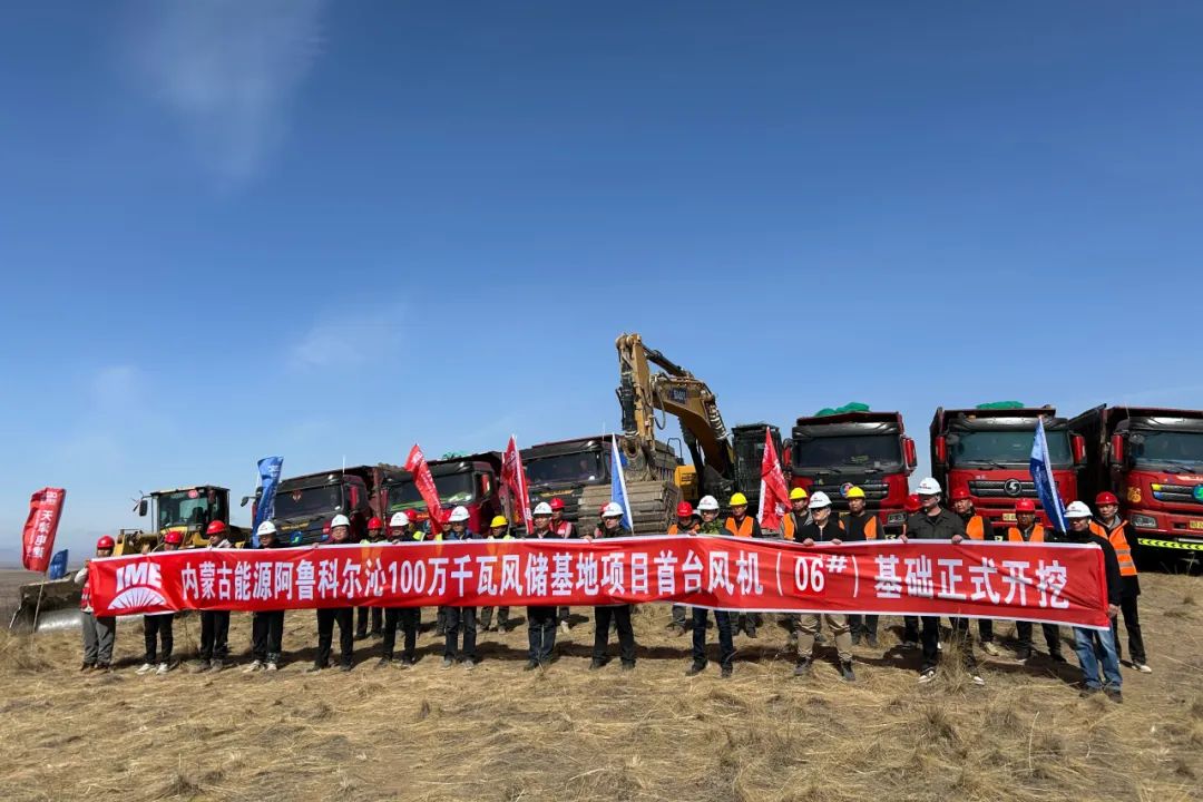 近日,阿鲁科尔沁100万千瓦风储基地项目首台风机基础正式开挖,标志着项目正式开工建设!