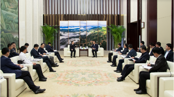 4月10日,国家电投党组成员、副总经理徐树彪在总部会见内蒙古自治区鄂尔多斯市委副书记、市长杜汇良,就进一步加强合作进行交流。