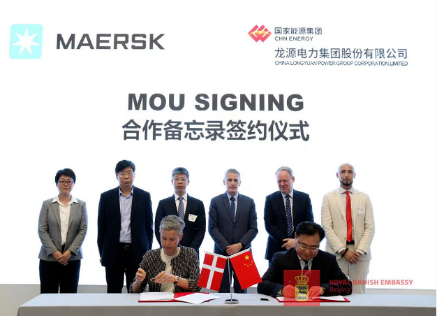 近日,在丹麦驻华大使马磊(Thomas Østrup Møller)的见证下,龙源电力与A.P.穆勒-马士基集团合作备忘录签署仪式在上海举行。龙源电力党委书记、董事长唐坚出席签约仪式并致辞,龙源电力党委委员、副总经理李星运,马士基集团首席企业事务官及总法律顾问Caroline Pontoppidan女士分别代表双方签署合作备忘录。