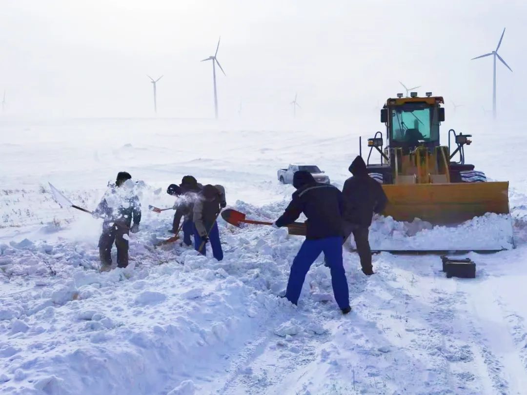 这是一位当地牧民和正在铲雪的电场员工说的话。每一个冬季,内蒙古锡林郭勒贝力克风电场所在的岗根希里嘎查内普遍降雪,大量的积雪对牧民群众正常出行和生产生活带来了诸多不便。每次降雪过后,电场党员干部都冲在前列,投身到铲雪行动中,帮助牧民纾困解难,最大限度减少降雪对牧民群众的影响。他们的名字也许没有被熟知,但他们的实际行动,他们的面庞,“中国电建”的标识深深刻在了牧民群众的心里。