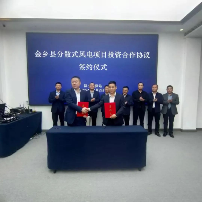 4月2日,金乡县蒜都发展投资有限公司与山东铁发新能源有限公司在蒜小宝招商驿站举行金乡县分散式风电项目投资合作协议签约仪式。山铁绿能科技(上海)有限公司董事总经理、山东铁发新能源有限公司董事长张风利、金乡县政府副县长秦绍亮出席。