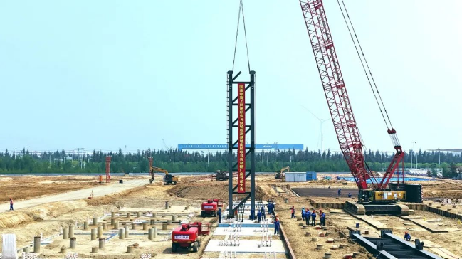 4月15日,由上海电力建筑工程有限公司承建的首个国家级海上风电研究与试验检测基地南区项目传动链试验车间首节钢柱顺利完成吊装。