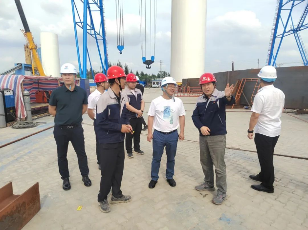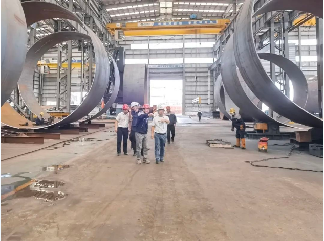 为深入了解阳江公司生产制造能力、成品储存等情况,张金发一行深入生产车间展开实地调研,李睿刚详尽介绍了四局装备在海上风电装备业务领域的生产履约情况、质量安全管控措施以及未来发展规划,并重点汇报了广西防城港A场址海上风电项目履约进展。双方就当前风电产业发展和长远规划交换了意见。