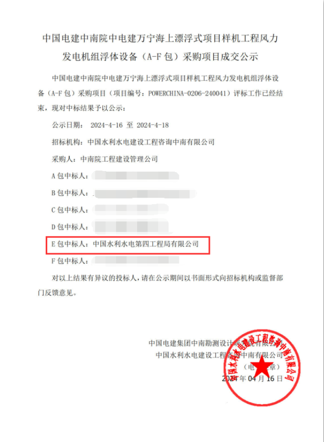 近日,中国水利水电第四工程局有限公司海上风电市场再迎重大突破,成功中标中电建万宁海上漂浮式项目样机工程风力发电机组浮体建造项目。