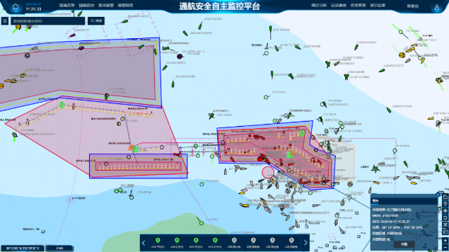 该平台涵盖AIS子系统、雷达子系统、VHF子系统、CCTV子系统、水文气象采集子系统、网络传输子系统、基础信息子系统、数据处理子系统、数据融合子系统、交通显示子系统、监控预警子系统等十四个子系统。依托海上升压站、海上风机建设2座AIS基站、2座VHF基站、2部6英尺雷达、2部超视距双光谱重型云台摄像机等感知设备,达到对风场区域以及附近沿海航路感知信号全面覆盖。主要包含海域态势感知、数据处理及互联互通、船舶异常行为识别预警、海上固定设施位置播发、电子围栏监管、船舶碰撞感知、预警信息自动播发等功能,以事前发现预警、事中处理取证、事后场景追溯为目标,探索实现一体化联控、全区域可视化管控、多部门业务协同。