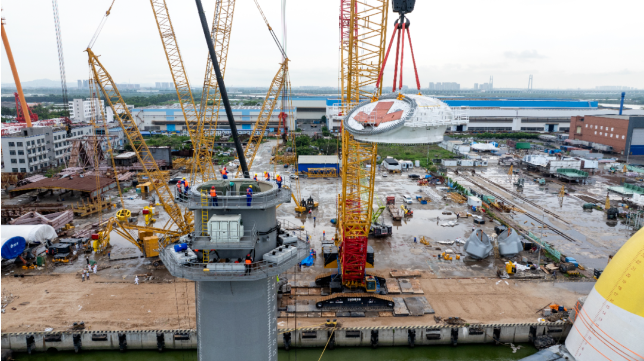 明阳集团表示,在塔筒吊装完成后将继续进行后续的安装工作,计划于今年上半年完成该风电平台的组装。