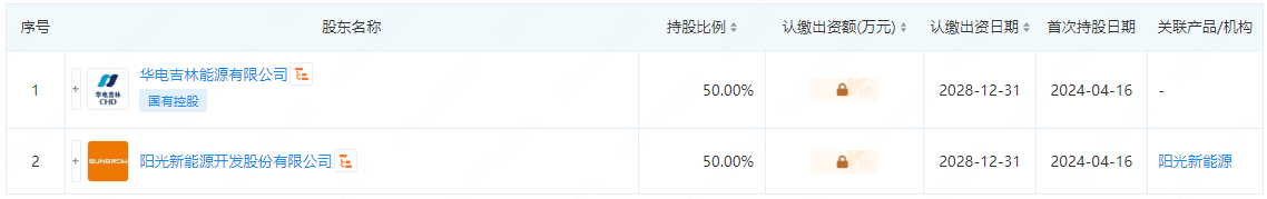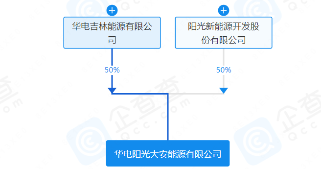 股权穿透图显示,华电阳光大安能源有限公司由阳光电源旗下阳光新能源开发股份有限公司、华电新能源集团股份有限公司子公司华电吉林能源有限公司分别持股50%。