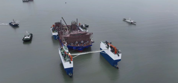 4月23日,在南通海事部门的维护下,国内首艘搭载智能船舶系统的自升自航式海上风电施工平台“港航平5”轮在江苏南通通州湾海域顺利完成下水。