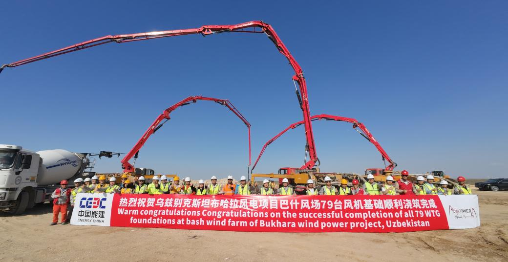 近日,随着第79台风机基础浇筑提前完成,中国能建乌兹别克斯坦布哈拉风电项目巴什风场风机基础浇筑全线完工,实现项目重要里程碑节点。