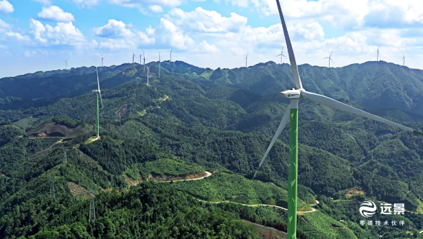 ▲广西苍梧六堡风电(一期)项目,安装20台远景能源智能风机