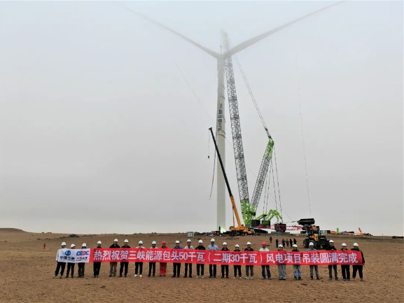 4月28日,随着E5号风机轮毂在百米高空与传动链精准对接,内蒙古包头50万千瓦风电示范项目(以下简称包头示范项目)76台风机全部吊装完毕。