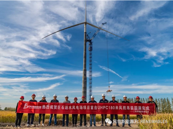 “4月30日,江苏涟水,上海风领全球首套180米UHPC混塔风电批量商业化项目正式并网发电。”
