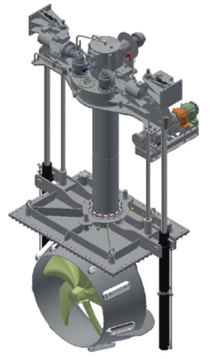 ZF ATZ 5311 RT-FP型可伸缩式全回转推进器有着当今全球先进的技术水平。由电机驱动,采用电机回转和液压升降,结构简单紧凑,操作安全可靠。作为辅助推进系统的一部分,可为船舶动力定位提供足够的推力,从而提高船舶的位置保持能力。