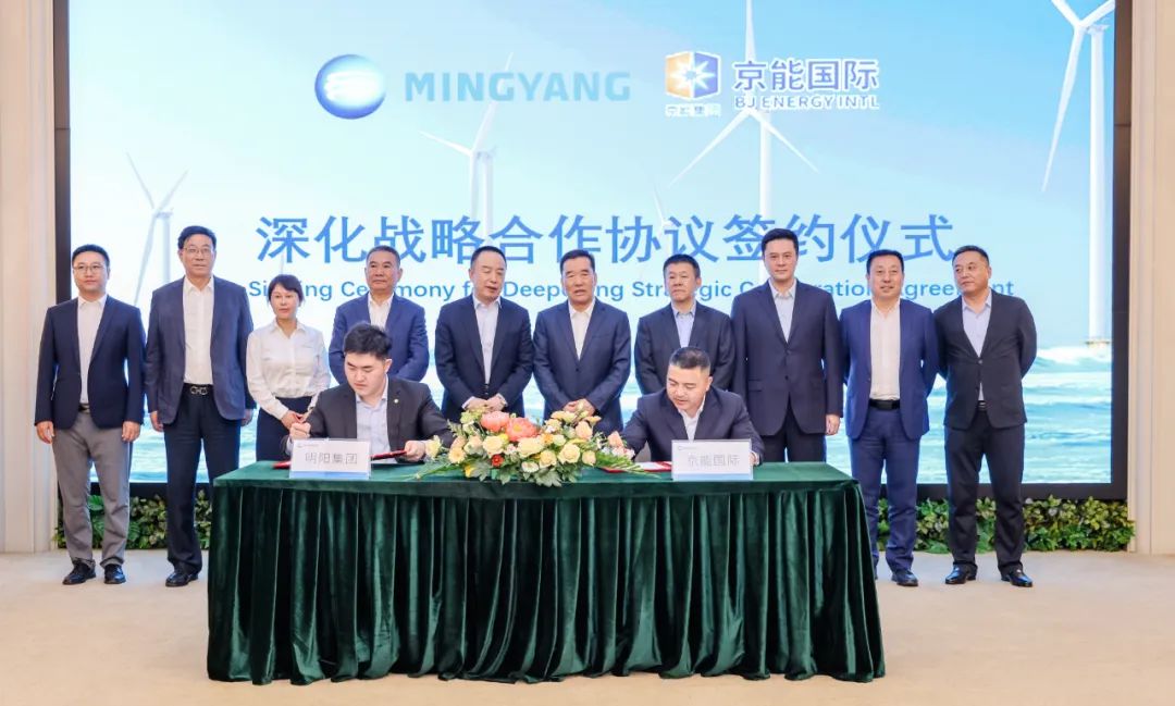 京能国际副总裁贾耕、投资总监兼战略投资部总经理李健、公司办公室主任安晓暄;明阳集团党委副书记、副董事长葛长新,明阳集团高级副总裁张超等参加签约仪式。