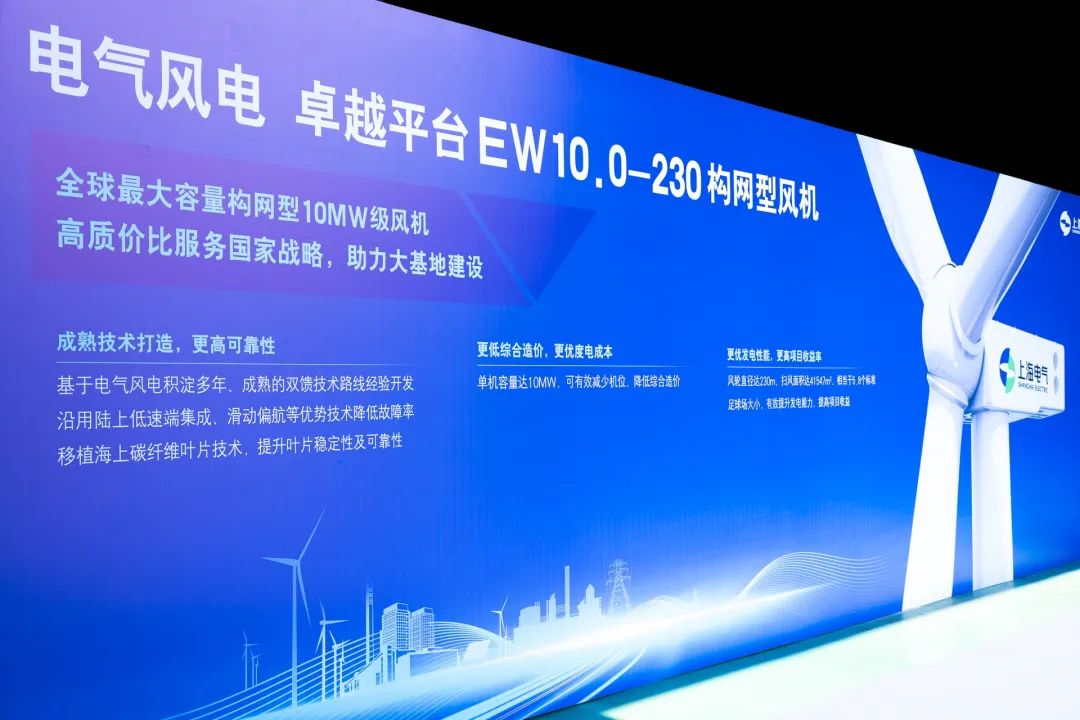 此次下线的全球最大容量构网型10MW级风机,基于电气风电积淀多年,经过批量机组实践打磨、充分验证积累、成熟的双馈技术路线经验开发而成。