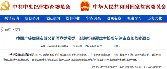 5月13日,据中央纪委国家监委驻国务院国资委纪检监察组、广东省纪委监委消息:中国广核集团有限公司原党委常委、副总经理谭建生涉嫌严重违纪违法,目前正接受中央纪委国家监委驻国务院国资委纪检监察组和广东省深圳市监委纪律审查和监察调查。