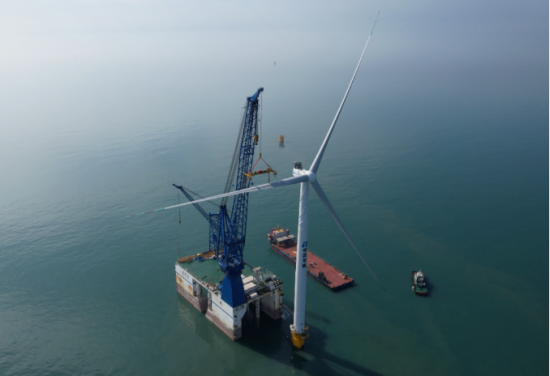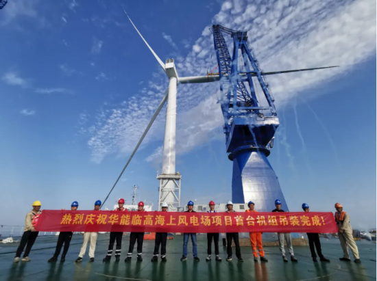 华能海南临高海上风电场项目(二标段)首台风机吊装完成