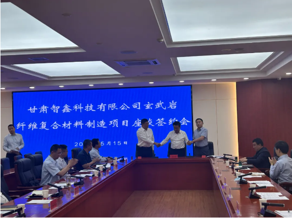 金丰良就投资玄武岩纤维复合材料制造项目做表态发言。他表示,将积极助力张掖综合能源示范基地和“零碳”城市建设,结合张掖市玄武岩矿产资源优势,投资引进创新型科技型高端新材料制造业,着力打造全国最大规模的“玄武岩纤维新材料制造和应用产业园”。