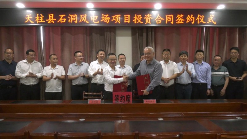 5月27日,天柱县与贵州清水江水电有限公司就石洞风电场项目举行签约仪式。贵州清水江水电有限公司董事长周乐,县委副书记、县长赵明波,县委常委、副县长蒋大伍出席签约仪式。