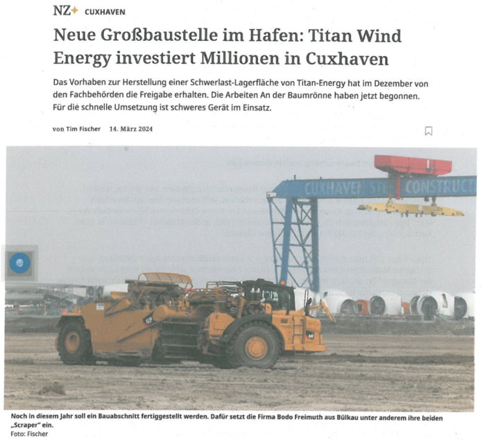 在德国库克斯港,公司正着手打造一个总面积超过30公顷的堆场区域,用于海工产品及其零部件的接收、储存和转运。该工程将分为两个阶段进行改造升级,公司预计在今年内完成第一阶段的建设计划,后续将继续进行堆场的改造和工厂设备的升级,预计明年可达到投产条件。