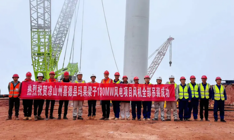 近日,四川凉山州喜德县玛果梁子130MW风电项目中的21台风机全部吊装完成。