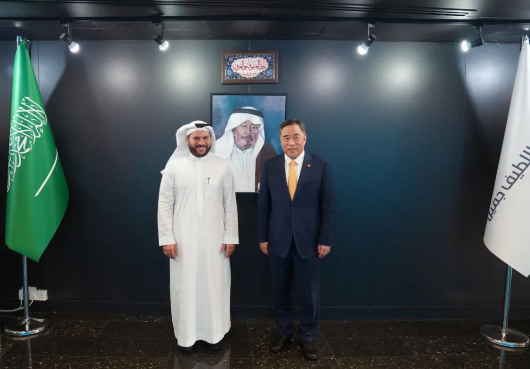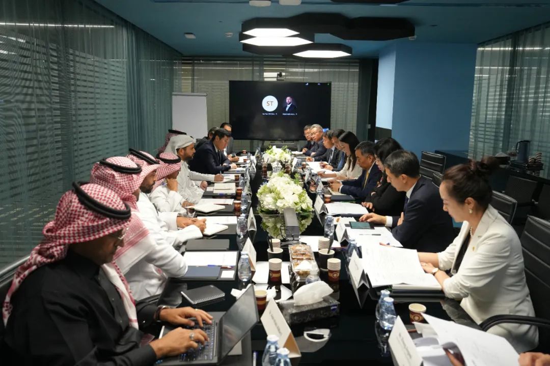 中国能建党委常委、总会计师李丽娜,沙特安利捷集团首席执行官罗瓦伊德·阿尔·萨瓦夫,双方相关部门、单位负责人参加活动。