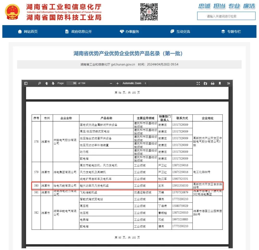 日前,湖南省工业和信息化厅发布了《湖南省优势产业优势企业优势产品名录(第一批)》,彰显了湖南在产业优化升级方面的成果。湖南兴蓝风电有限公司(原“哈电风能有限公司”,下文简称“兴蓝风电”)的超大功率风力发电机组作为风电行业翘楚成功入选。本次入选是对兴蓝风电在风电领域的技术研发创新能力、竞争优势和制造实力的又一次充分肯定和证明。