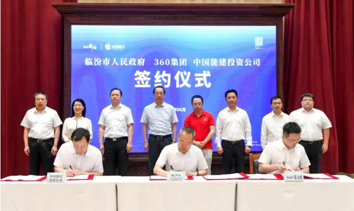 6月4日,中国能建投资公司党委委员、副总经理赵帅与山西省临汾市委书记李云峰,360集团创始人、董事长周鸿祎在晋举行会谈,并共同见证山西省网络空间安全智算中心+集中式风电一体化项目签约。