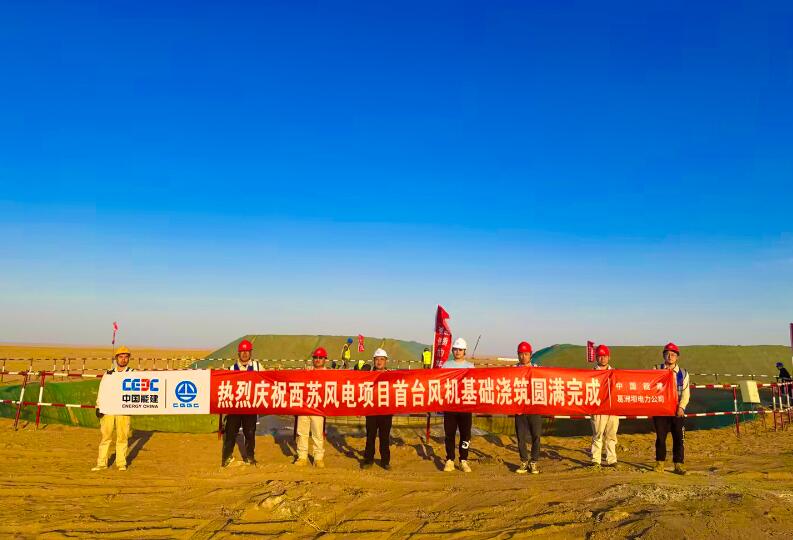 6月7日,由中国能建葛洲坝电力公司承建的当前国内陆上单机容量最大风电项目——蒙能西苏100万千瓦风储项目EPC工程Ⅲ标段完成首台风机基础浇筑任务。标志着该项目已全面进入主体施工阶段为顺利实现“10·31”全容量并网目标奠定坚实的基础。