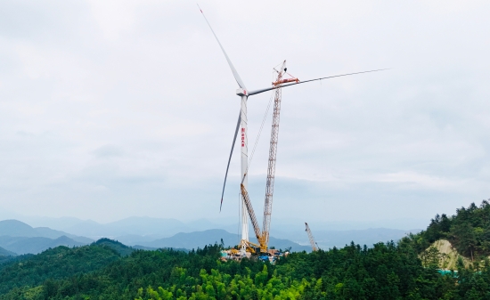 南康隆木乡风电场项目工程场址位于赣州市南康区隆木乡境内,该风电场海拔在800至1000米,地势高、起伏大,最大落差在300米以上。风机机位分布在独立山头上,场内施工道路设计路面宽度仅4.5米,且多急弯陡坡,风机运输设备、吊装设备行走难度大。项目部在保证工程质量的前提下,根据现场实际情况,制定山地式风电项目水平单叶式吊装专项施工方案,并事先进行静、动载试验,严格进行技术交底和班前安全交底,保证了首吊工作安全高效进行。