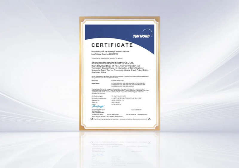 同日,TÜV北德大中华区副总裁须婷婷女士莅临禾望展台,为禾望HHP-6600-900-L-I-N型号的制氢电源产品颁发IEC/EN 62477-1认证证书。该标准旨在规范电力电子变换器设备的设计和生产,确保其符合国际安全标准。在认证过程中,需要经历一系列的测试和验证,涵盖电气安全、机械安全、环境适应性等各个方面,以确保其满足标准要求。禾望IGBT制氢电源获得该项证书,是对该产品质量、安全性、可靠性的有力证明,也是该产品进入国际市场的重要通行证。