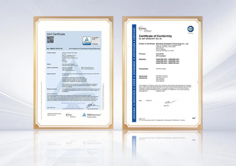新的征程开启,禾望电气在SNEC展期间得到了多家全球权威认证机构的大力支持。6月13日,TÜV莱茵大中华区副总经理陈雄先生为禾望HSNV100-110K系列组串光伏逆变器产品颁发符合VDE-AR-N 4110:2023 & VDE-AR-N 4120:2018标准的认证证书;6月14日,TÜV南德大中华区副总裁许海亮先生为禾望HSNV36-75K系列组串光伏逆变器产品颁发符合VDE-AR-N 4110:2018 & VDE-AR-N 4120:2018标准的认证证书。该标准是全球并网标准中最严苛的,且最近更新的2023新版标准对光伏逆变器的并网要求较以往版本更为严格,给公司的产品研发设计能力带来了更大的挑战。禾望电气多个系列产品获得该项证书,充分验证了禾望光伏逆变器的高性能与高品质,也充分展示了禾望电气的技术实力和创新能力。
