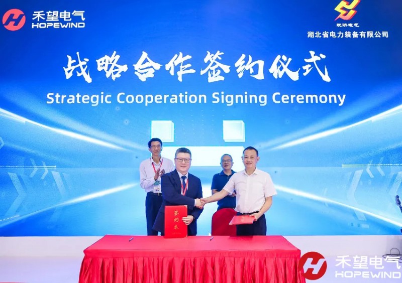 除了国际权威机构的站台,中电建装备集团有限公司下属企业——湖北省电力装备有限公司于6月13日与禾望电气举行了战略签约仪式。未来,双方将聚焦能源电力和新基建领域,开展更加深入的合作,通过新能源电气设备及相关产品共同为新能源行业创造价值,共创共赢。