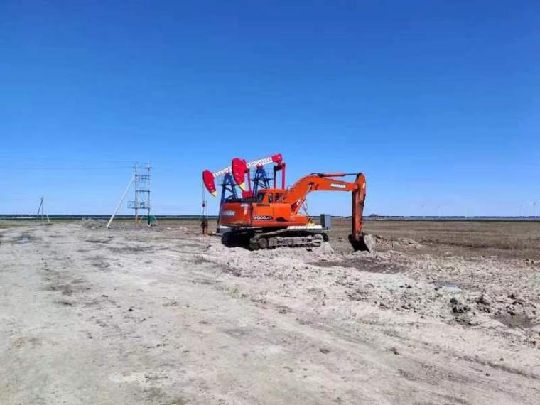6月10日,天刚蒙蒙亮,采油四厂杏北开发区低碳生产园区清洁替代风力发电工程现场已是人来人往、热闹非凡。工程建设公司路桥公司第三项目部正在进行张铁匠4-2F01#风电基础的施工,为月底基础开挖施工紧锣密鼓地做准备。