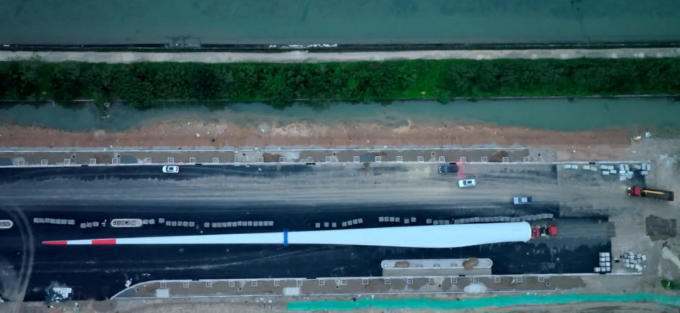 本次风电机组采用分体式吊装,单吊装最重部件达270余吨,轮毂和风叶总重达240余吨,风轮直径达260米,叶片扫风面积超5.3万平方米,相当于7.4个标准足球场的大小。