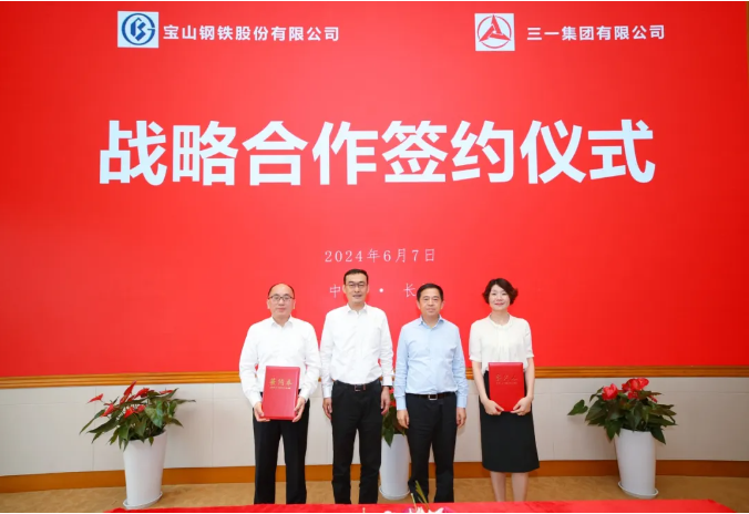 6月7日,三一集团与宝钢股份战略合作深化协议签约暨联合实验室揭牌仪式在长沙三一集团总部圆满举行。