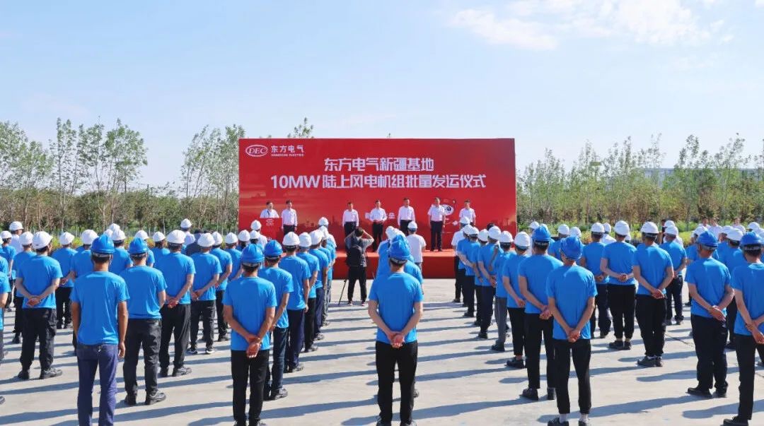 6月24日,东方电气新疆新能源高端装备制造基地(简称“东方电气新疆基地”)举行10兆瓦陆上风电机组批量发运仪式。东方电气集团党组书记、董事长俞培根出席仪式并讲话。新疆昌吉州人大常委会党组成员、木垒县委书记张辉,木垒县委副书记、县长哈比勒贝克出席仪式。