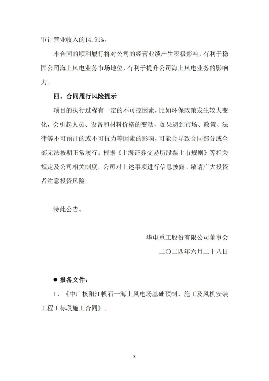 6月28日,华电重工股份有限公司(简称:华电重工)发布关于重大合同的公告。