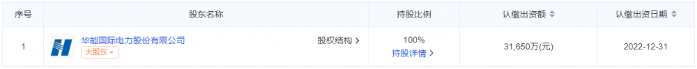 据爱企查股权穿透图显示,华能安徽怀宁风力发电有限责任公司由华能国际100%控股。(参考资料来源:爱企查)