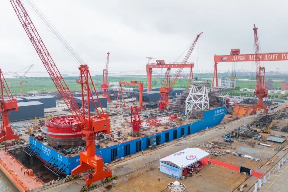 6月28日,由中国铁建港航局投资建造的5000吨全回转起重船“铁建起重5000”吉水仪式在江苏南通隆重举行,在山东海阳建造的2000吨自升自航式风电安装船“铁建风电2000”也将于6月30日正式下水,国家海上风电行业“舰队”再扩编,为早日实现“双碳”目标再添助力。