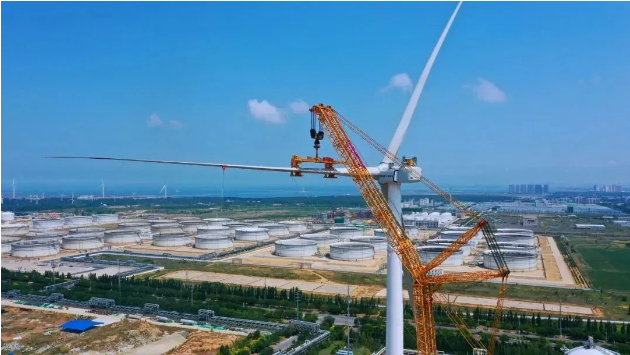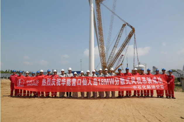 6月30日,中石化起运公司圆满完成华能营口仙人岛18MW分散式风电项目。该项目是起运公司集土建、吊装、运输、安装一体的标志性工程项目。此风机的成功安装,标志着创造“两个全球第一”纪录——全球风轮直径最大和单机功率最大的机组即将投入商业化应用。