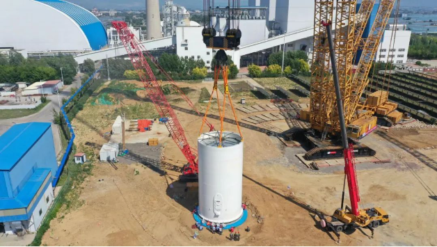 起运公司提供“吊装运输一体化”优质服务,突破大尺寸风机滚装、滚卸、海上运输难题,采用“门到门”的运输方式,从东营、盐城、大连通过水陆联运至华能仙人岛热电厂,使用XGC88000型履带式起重机吊装就位。