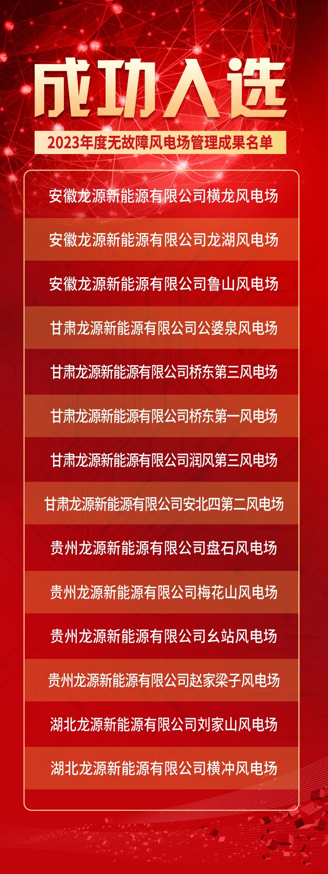近日,中国电力技术市场协会运维检修分会发布《关于公布2023年度无故障风电场管理成果名单的通知》文件,龙源电力14家风电场入选2023年度无故障风电场管理成果名单。