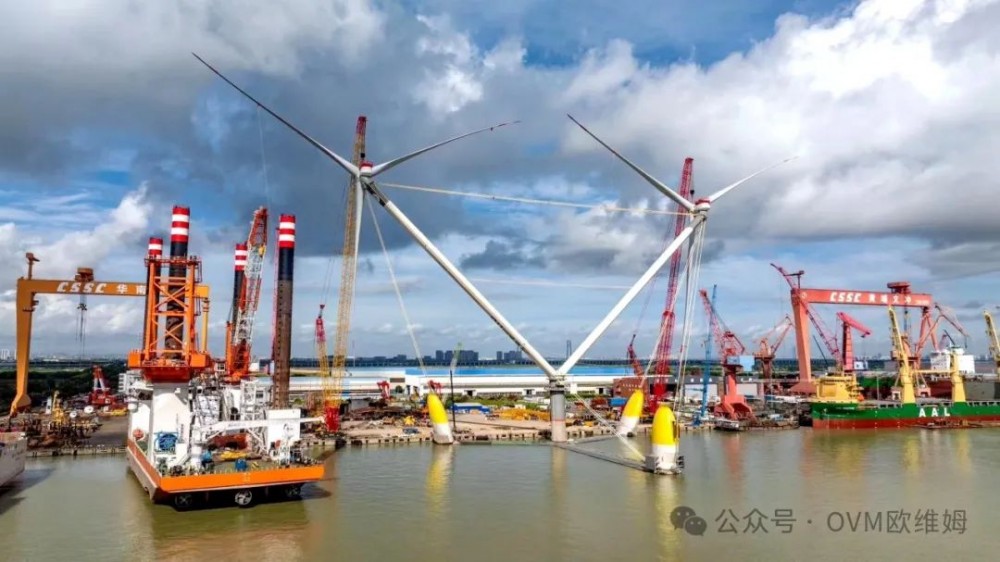 7月3日,全球单体容量最大的漂浮式风电平台“明阳天成号”在广州南沙正式完成安装,这也是全球首个在一个漂浮式基础上安装两座风机的海上风电平台,总容量达到16.6兆瓦。该风电平台外部的拉索系统由柳工欧维姆公司参与设计研发、生产制造并实施安装施工。